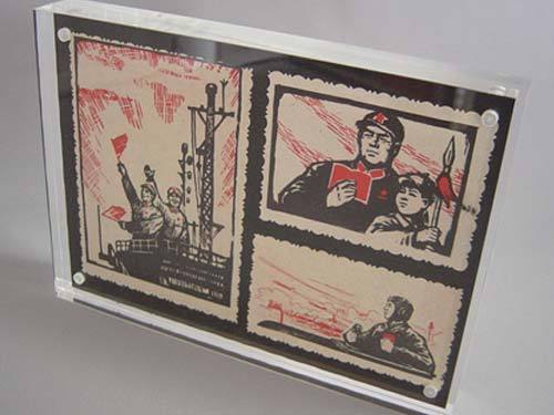 毛沢東時代のプロパガンダをフレームに入れてモダンアートに!背面にも絵柄があるので2倍楽しめます。