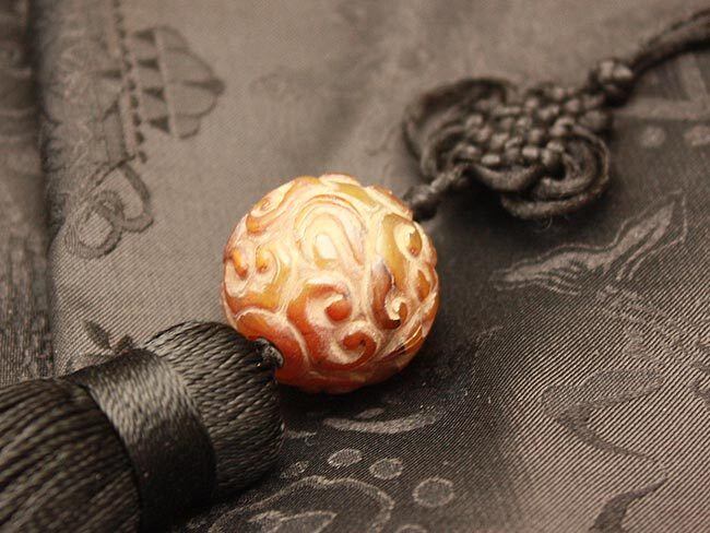 アンティーク市場で見つけた玉(ぎょく)をオリジナルで房飾りにアレンジしました。