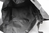 外側にマジックテープ付きのポケットがあります。幅約20cm×底まで(26cm)