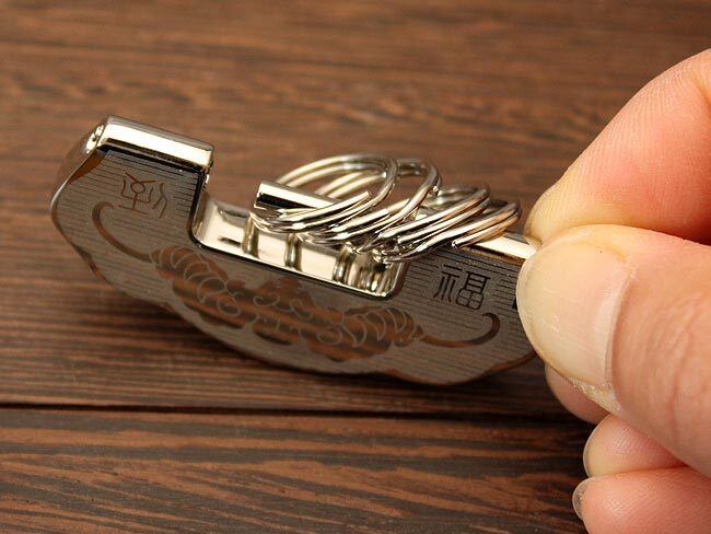中国伝統の吉祥文様「蝙蝠こうもり(音読みで「変福」と読めるため福に転ずるの意)が描かれたとても珍しい型のキーホルダー。