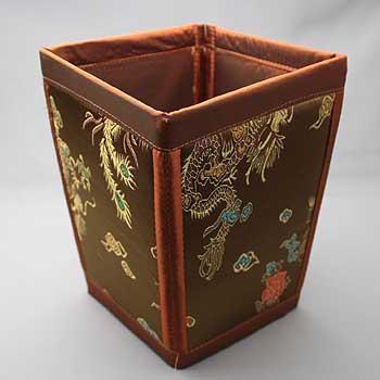 珍しいチャイナテイストの折りたたみ式の小さめのゴミ箱。デスク周りなど大きなゴミ箱じゃ見栄えが悪い。。そんな所にいかがでしょう。