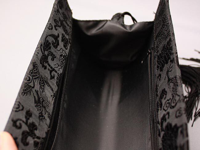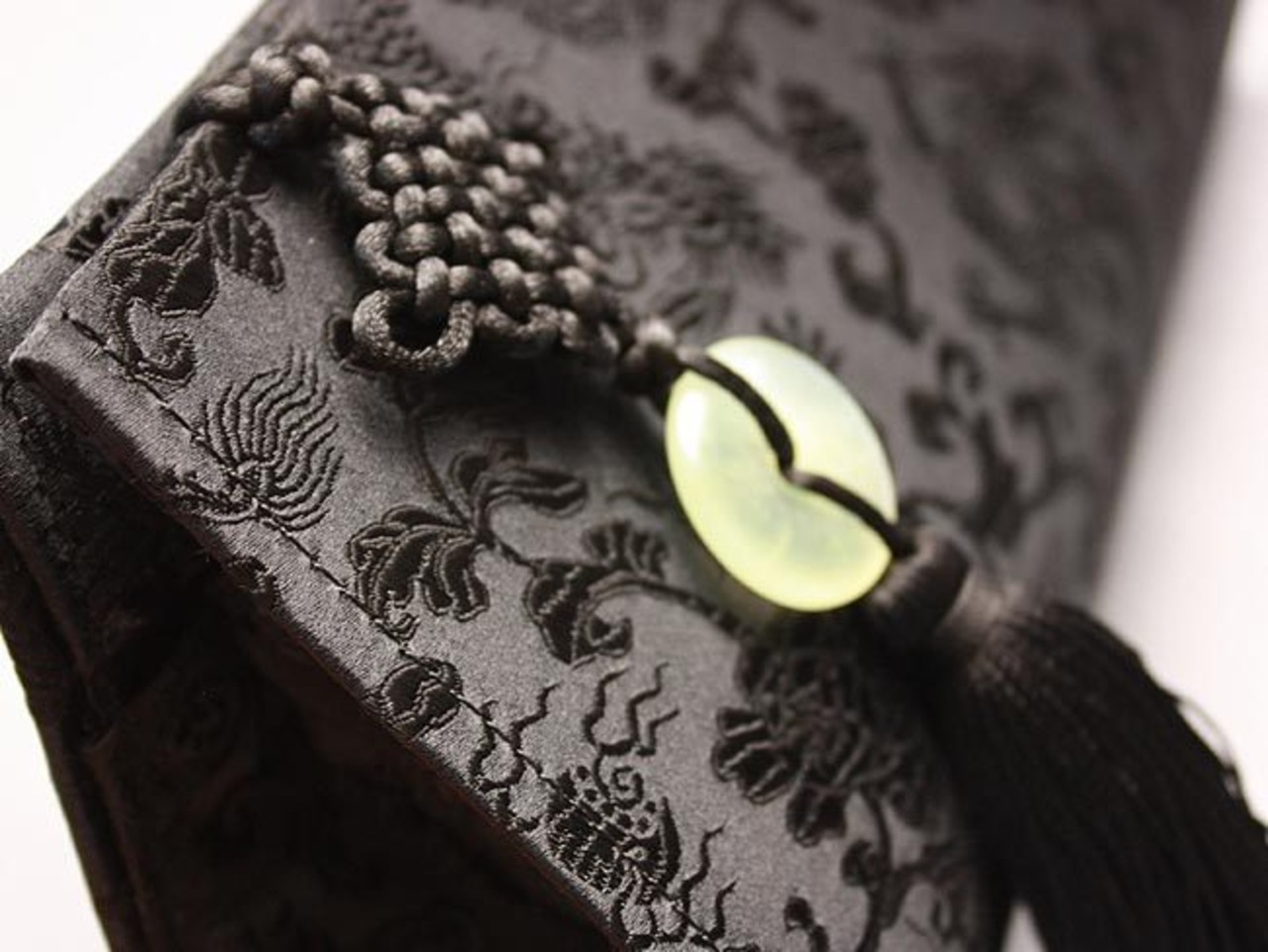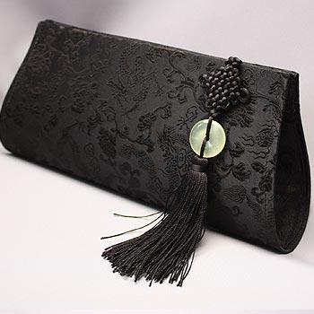 黒のシルクは龍と牡丹の柄が施されていてシックなハードクラッチです。フォーマルなシーンで活躍してくれますね。
