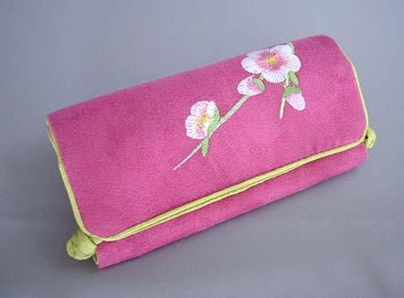 内容:深さ約7.5cmチャック付のポケットが2つ、深さ約17cmチャックなしのポケットが1つ、チャイナボタンデザインのリングホルダー