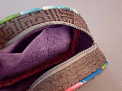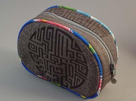シノワ定番の牡丹の布をパイピングにあしらったコットンポーチ。