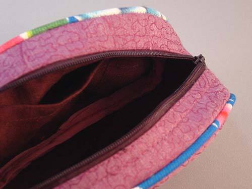 シノワ定番の牡丹の布をパイピングにあしらったコットンポーチ。