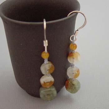 「銭」が3連でぶら下がっているこのモーチーフは「金運、家庭運」の意が込められています。それぞれの翡翠が、緑、茶、透明系がグラデーションになっていて奇麗。