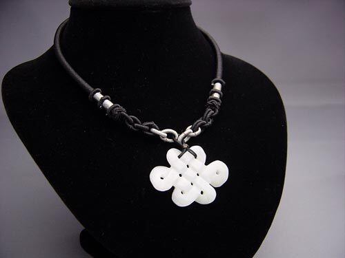 中国結は永遠を意味します。トップの翡翠の品質は少々劣りますが、オリジナルでオーダー留めしたチョーカー部分と共に印象的でエレガントな香港シノワズリー調に仕上がりました。