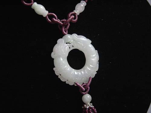 とても透明感のある翡翠は双龍。龍は風水では皇帝を表す高貴な伝説上の動物。「成功、幸福」のシンボルとされています。この龍が1対になる事でさらに縁起が良くなるのだそうです。
