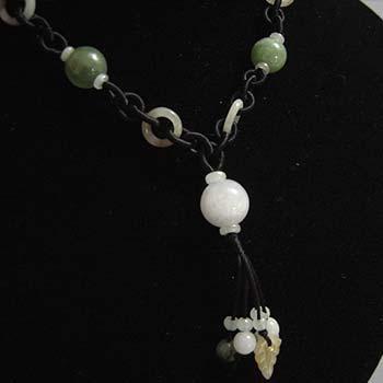 チェーン部分の翡翠の緑色とコントラストが綺麗。