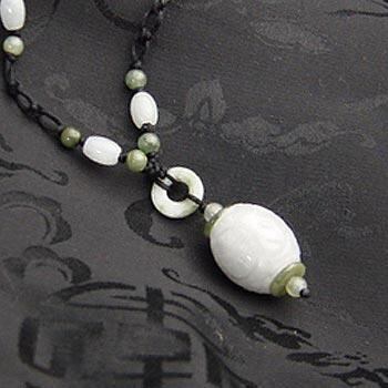 人気の万寿模様の翡翠をメインにシンプルなネックレスを作りました!控えめなオリエンタル感が普段使いに重宝しそうですね!