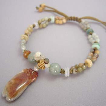 紐の色はブロンズ。翡翠も含めた全体的な色合いがイエローゴールド系になっていて運気が上がりそう。華奢で素敵です。